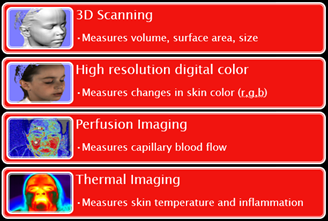 Total Contact, Inc. is developing the CPI that, in rapid succession, acquires three-dimensional surface, color, thermal, and perfusion images of a localized area on the skin (Fig. 1B). This study will determine if the CPI can capture consistent, quantifiable images of potential and existing PrUs and, when staging pressure ulcers using the CPI vs. current subjective methods, if algorithmic analysis of the image data correlates with current subjective assessment methods.